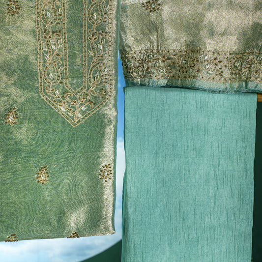 Tea green tissue 4pc w/ tillah gota work