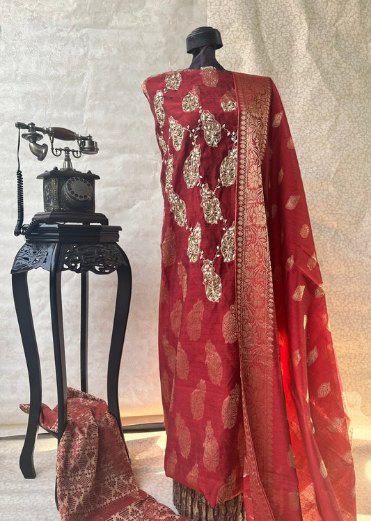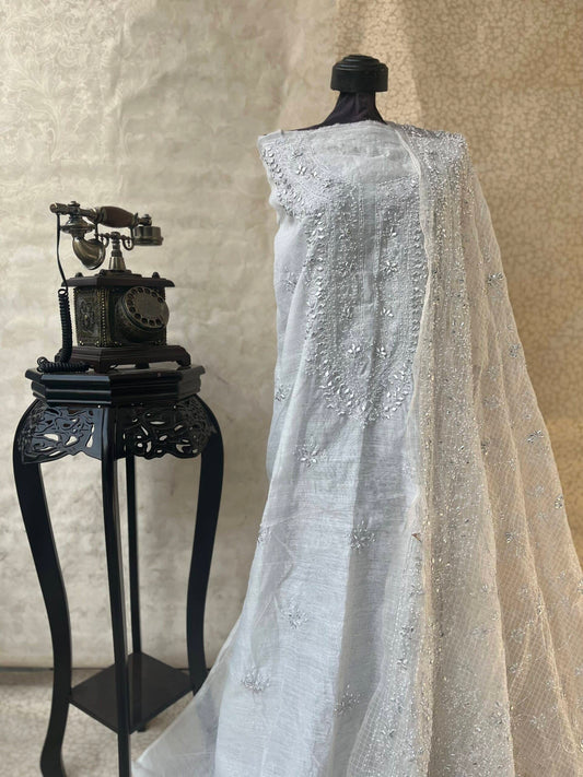Tea green tissue 4pc w/ tillah gota work
